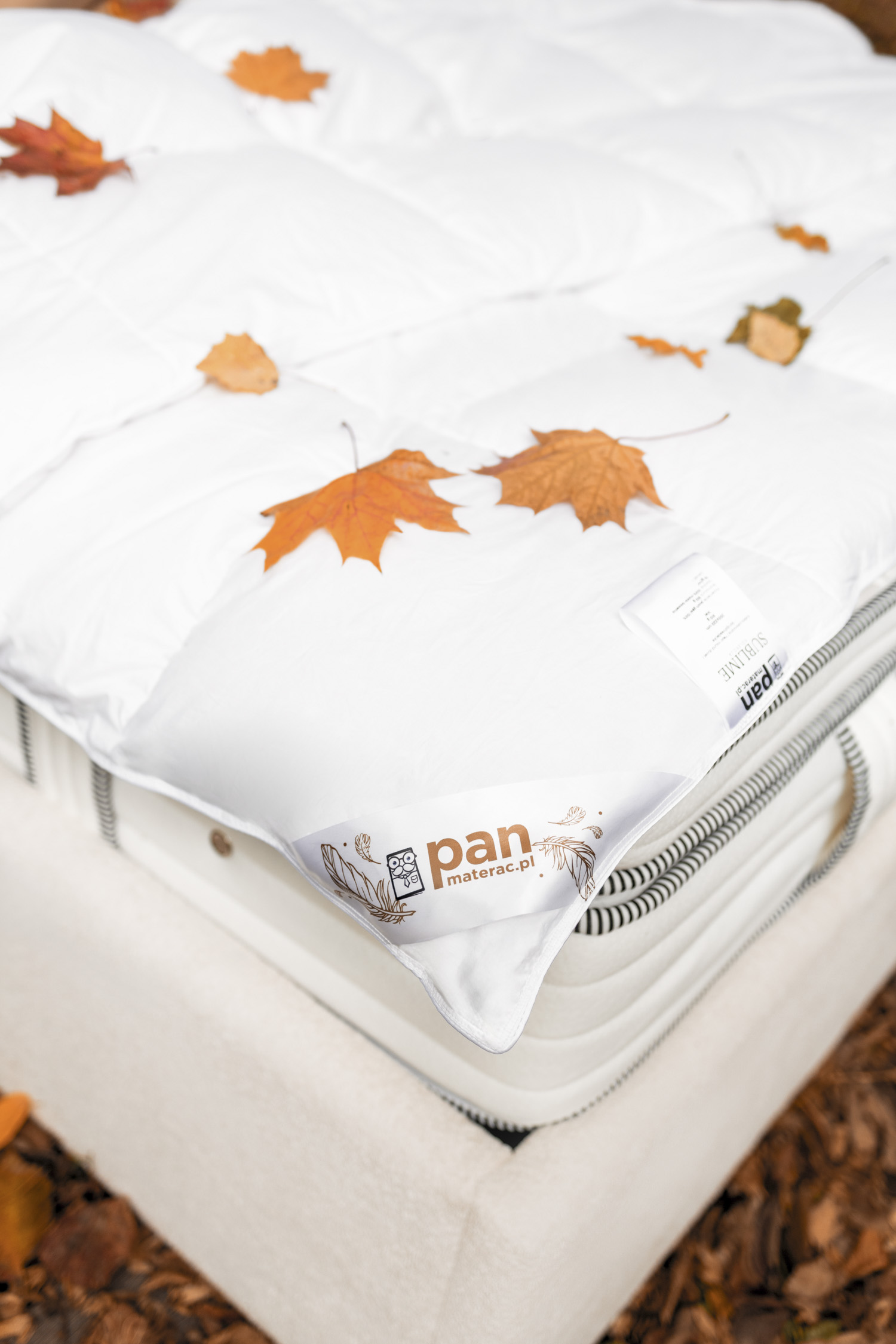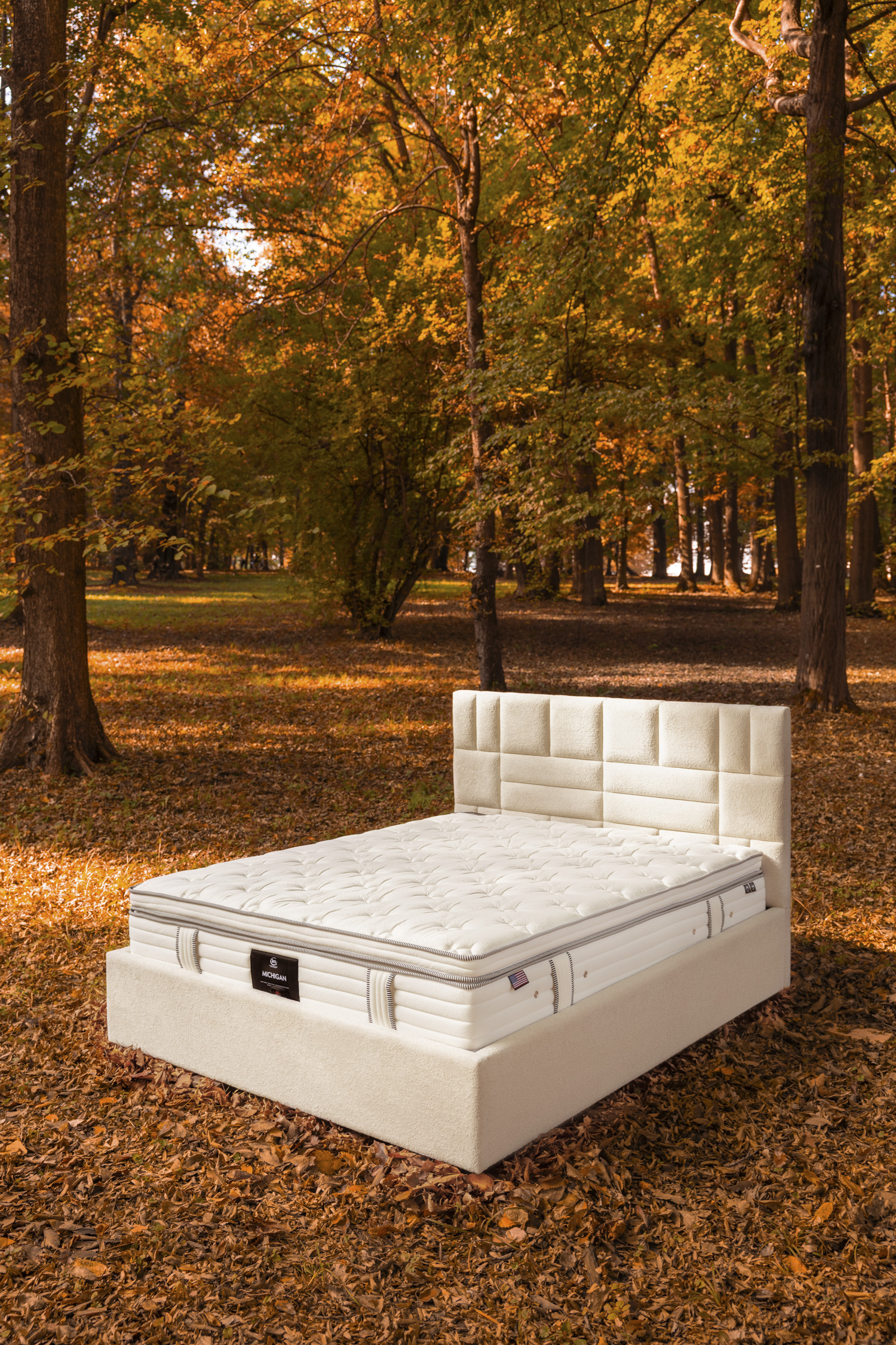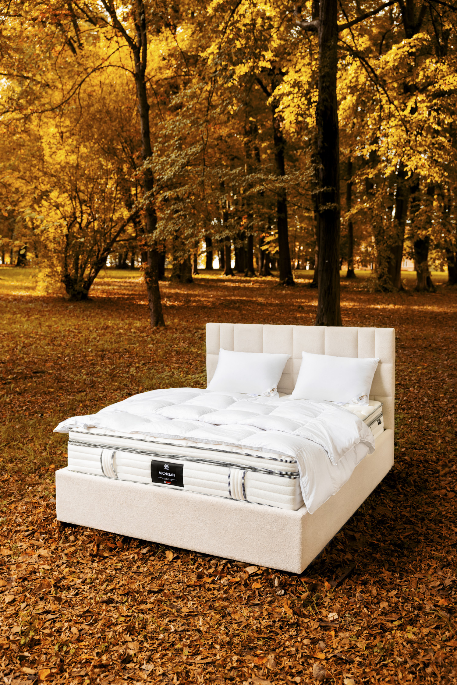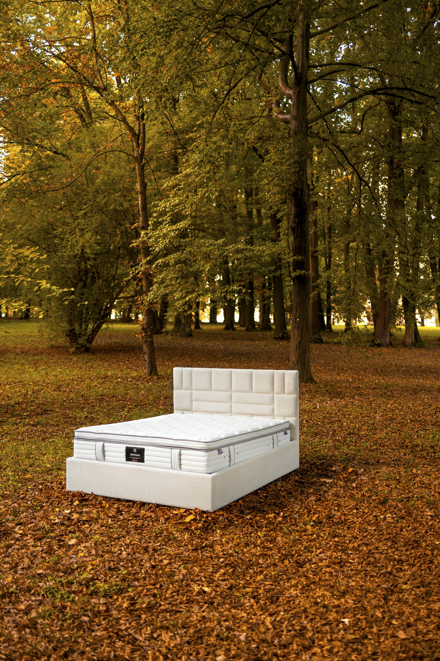 Przygotowania do takiego projektu fotograficznego to proces, który jest połączeniem dobrej organizacji, planowania oraz kreatywności. Trzeba było znaleźć idealne miejsce, przewieźć łóżko i dopasować całą aranżację. W centrum kadru pojawił się oczywiście bohater kadru – łóżko z materacem, które aranżowaliśmy na kilka sposobów. Pokazaliśmy je wyłącznie z materacem, z białą pościelą , a także w dalszej części zdjęć – aranżowaliśmy łózko, dodając pledy, koce, kolorowe poduszki, liście czy wiklinowy kosz. Sceneria musiała być dopracowana w każdym szczególe.