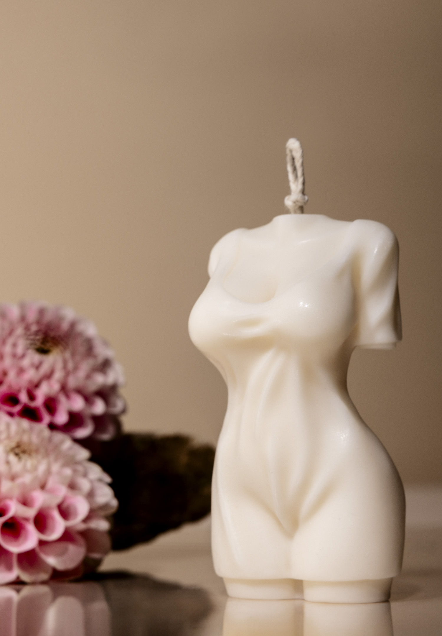 Fotografia aranżowana świec to temat, który daje ogromne możliwości twórcze. Tym razem miałam przyjemność pracować z polską marką Corina Candle (corina.pl), tworząc wyjątkową sesję aranżowaną świec sojowych. Bohaterkami zdjęć były świece pupile, a także świece o tematyce kobiecej – delikatne, a jednocześnie nowoczesne w formie. Cała realizacja składała się z dwóch części. Pierwsza obejmowała klasyczne zdjęcia do sklepów online, czyli minimalistyczne ujęcia na białym tle. Drugi etap to część kreatywna – sesja aranżowana, w której mogłam puścić wodze wyobraźni. Inspiracją była prosta, i elegancka kompozycja z żywymi kwiatami dalii ułożonymi na naturalnym kamieniu. Kwiaty dodały świeżości i subtelności, a przezroczysta pleksi pozwoliła uzyskać delikatne, lustrzane odbicie. Użyłam też brązowych, kartonowych teł, aby całość utrzymać w ciepłej kolorystyce marki.