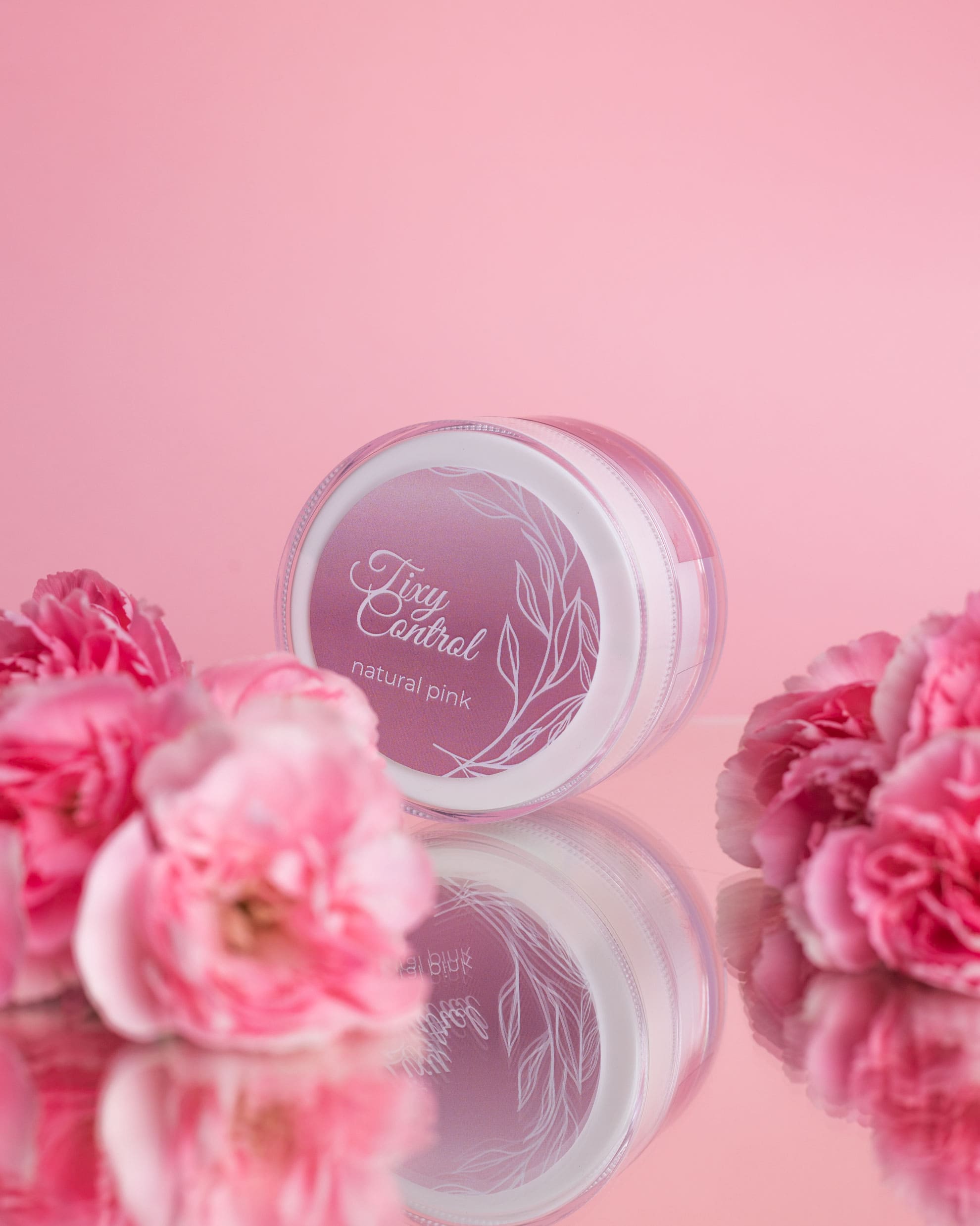 Fotografowane produkty obejmowały całe zestawy kosmetyków, takie jak systemy żelowe i różne kolory lakierów hybrydowych. Kluczowym elementem było stworzenie spójności pomiędzy kolorami używanymi przez markę a estetyką aranżacji. W przypadku pierwszej serii zdjęć wykorzystałam różowe tło, które zneutralizowałam białym kolorem, oraz dodatkowo wkomponowałam różowe kwiaty. Motyw kwiatowy doskonale współgrał z designem etykiet produktów, co podkreśliło ich elegancję i kobiecy charakter.