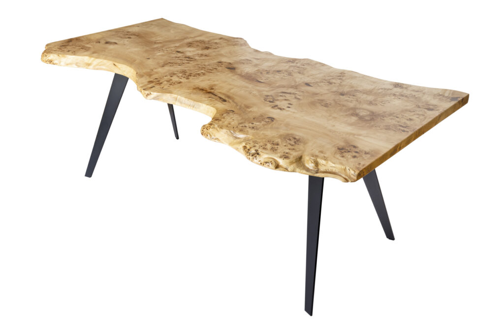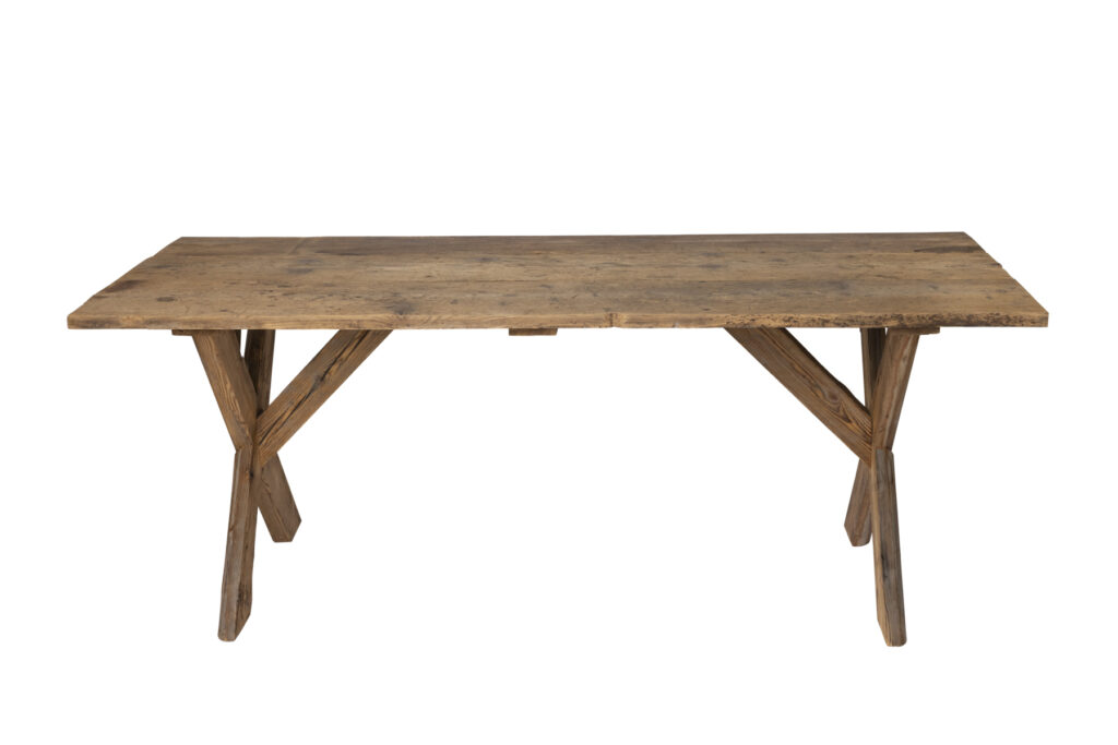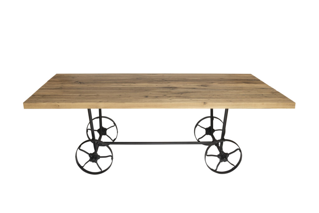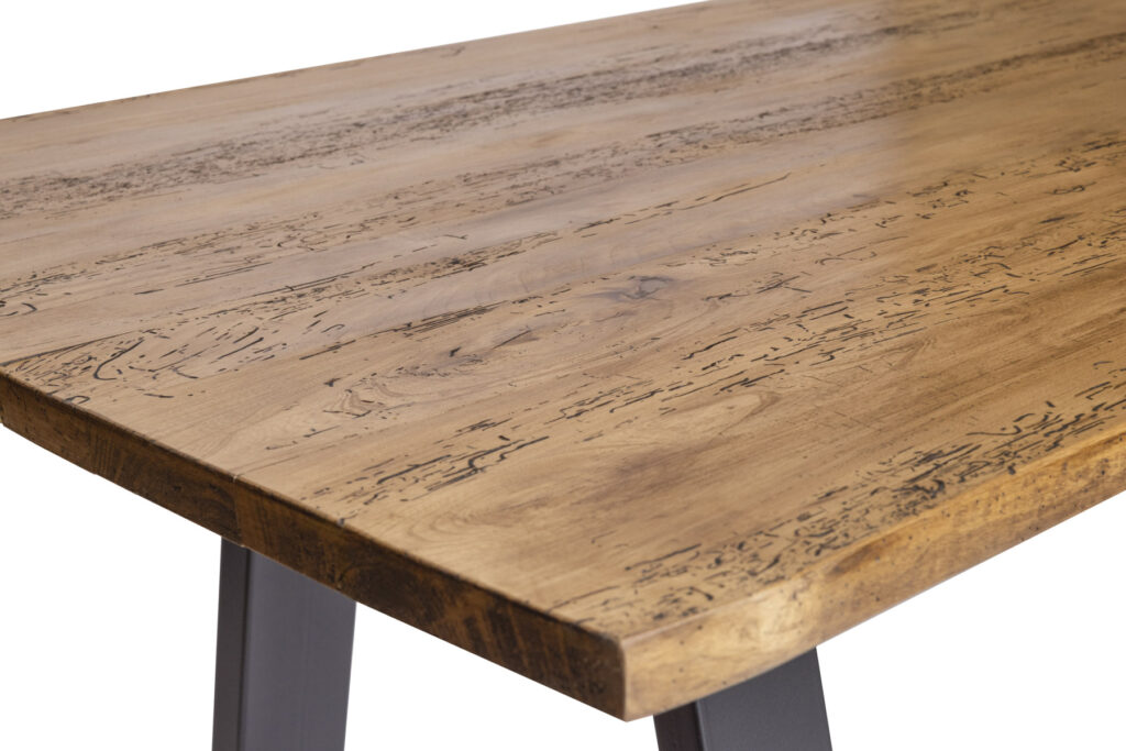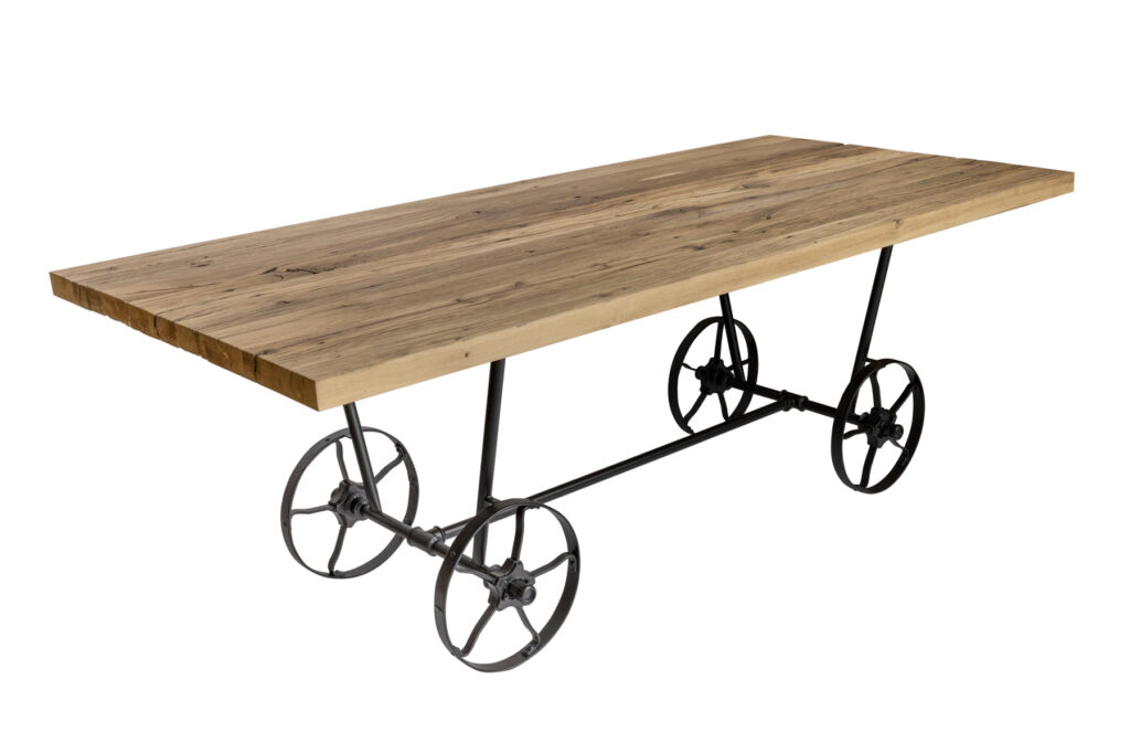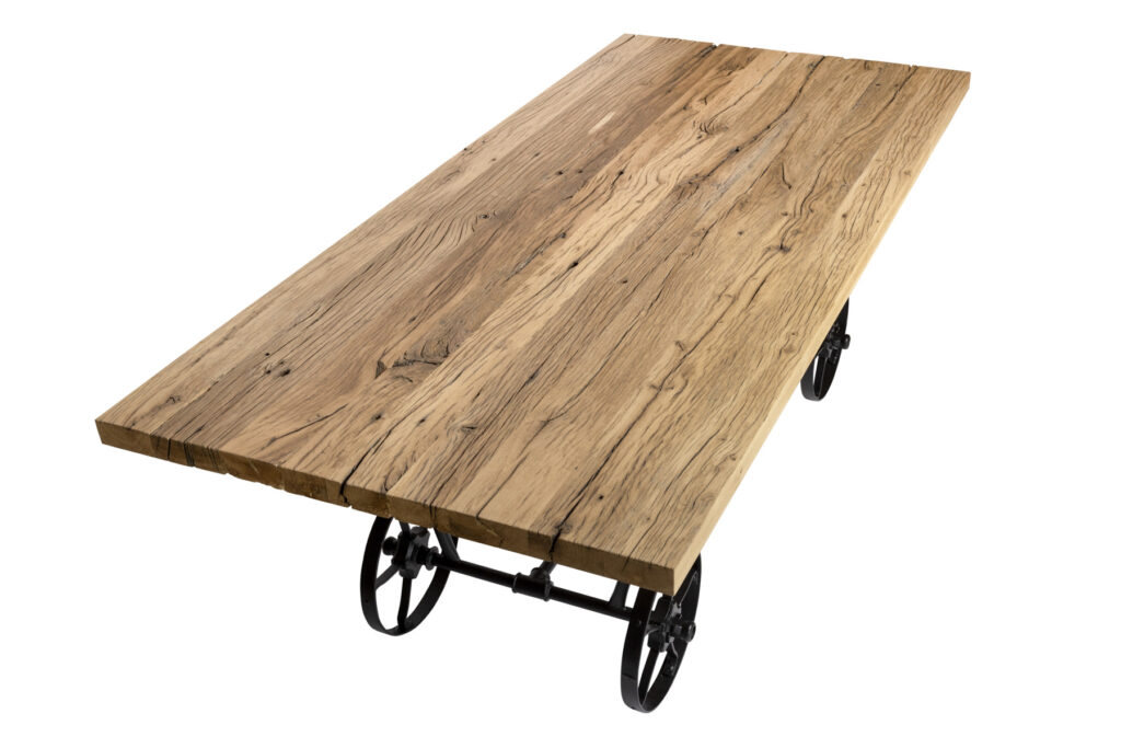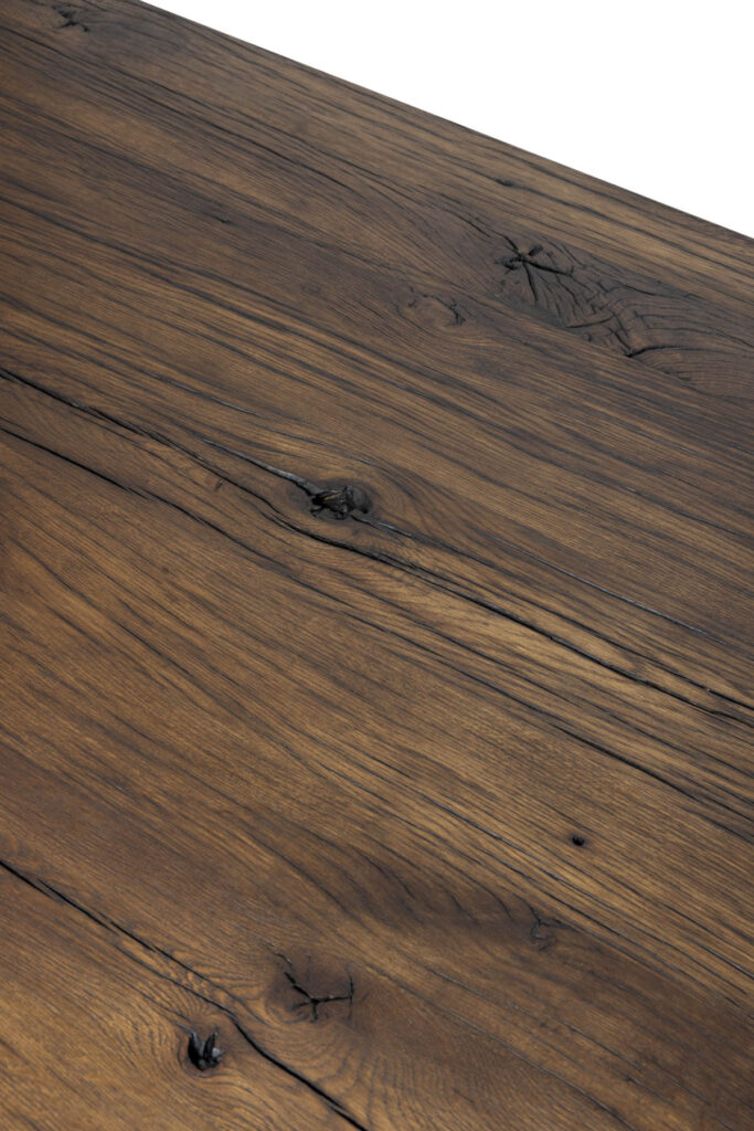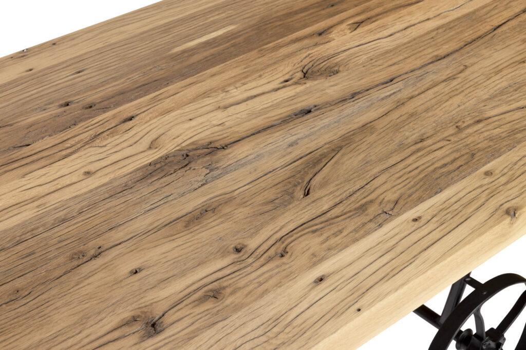 Klient przygotował meble o dużych gabarytach – stoły, które miały widoczne ślady czasu, pęknięcia, słoje. To właśnie one nadawały zdjęciom charakter. W tej realizacji kluczowa była dbałość o szczegóły. Fotografia produktowa stołów w tym przypadku obejmowała zarówno ujęcia całych mebli, jak i ich detali – wykończenia nóg, fakturę drewna czy krawędzi blatów. Powstały profesjonalne zdjęcia do sklepów online, tzw. zdjęcia pack shot. Klient wybrał po kilka kadrów dla każdego stołu, dostosowanych do wymagań platformy e-commerce.