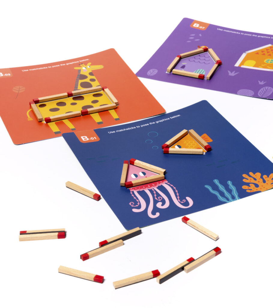 Sesję podzieliłam na kilka etapów. Zaczęłam od klasycznych packshotów – czyli zdjęć produktów na białym tle. Fotografowałam pudełka, całe zabawki pod różnymi kątami, a także detale, które pokazują ich strukturę i wykończenie. Dla starszych dzieci producent przygotował zabawki rozwijające logiczne myślenie oraz wyobraźnię – jak łamigłówki i kreatywne układanki. Te wymagały szczególnej prezentacji, dlatego zadbałam o zbliżenia oraz pokazanie ich wszystkich wariantów zabawy.