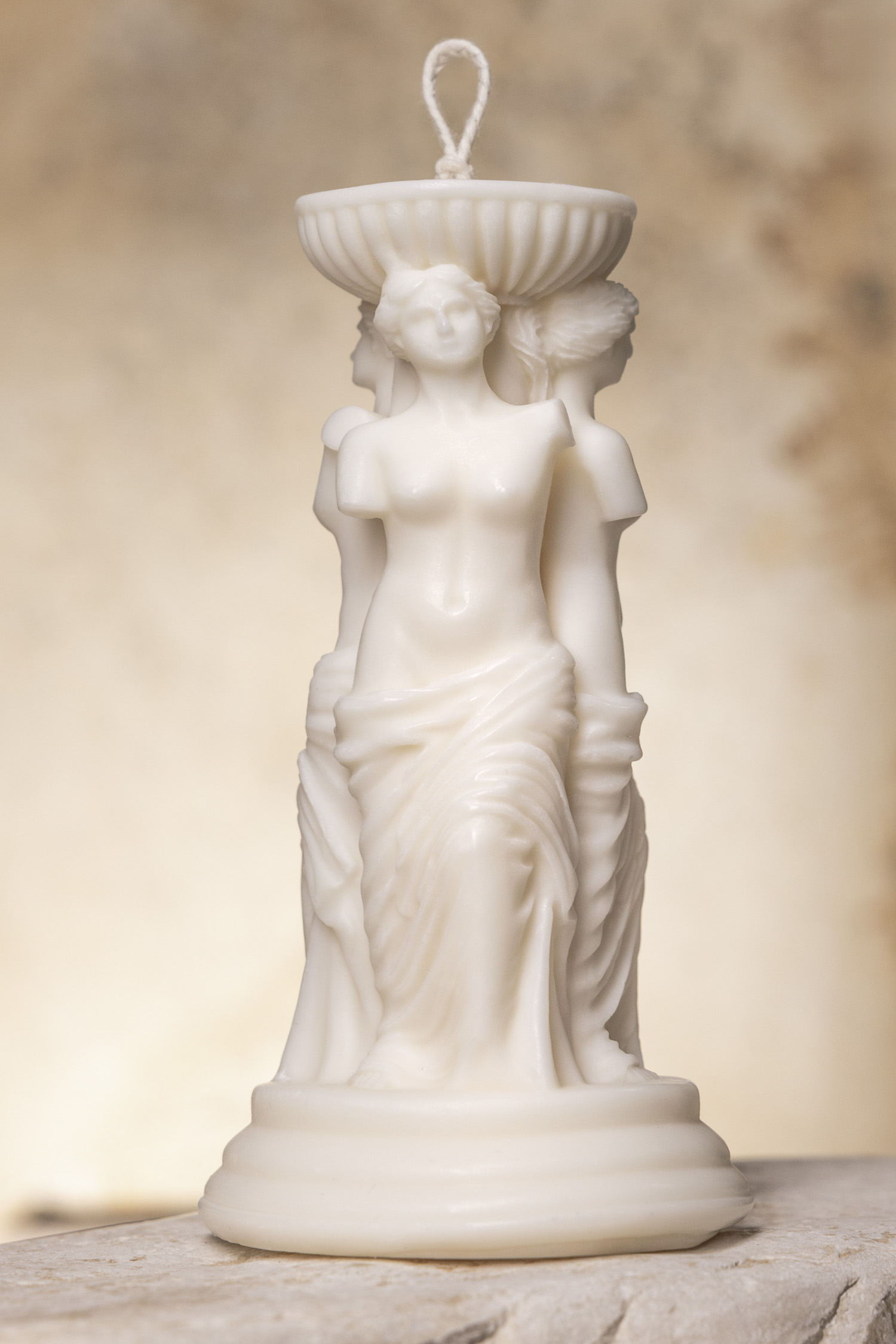 Tworzenie zdjęć aranżowanych świec to dla mnie zawsze proces pełen pasji, detali i przemyślanych kompozycji. Tym razem pracowałam nad cyklem fotografii dla marki Corina Candle (corina.pl). Była to wyjątkowa sesja aranżowana świec sojowych, w której połączyłam różne motywy – antyczne, religijne oraz znaki zodiaku. Każda z tych kategorii miała swój indywidualny charakter, jednak łączył je wspólny element – naturalny kamień. Zakupiłam kilka jego rodzajów, między innymi piaskowiec, wapień, onyks i łupek brązowy. Ich struktura idealnie współgrała z formą świec, podkreślając ich rzeźbiarski kształt i wyjątkowy styl. W przypadku świec zodiakalnych postawiłam na papierowe tło, które rozjaśniłam od lewej strony, by uzyskać efekt subtelnego światłocienia.