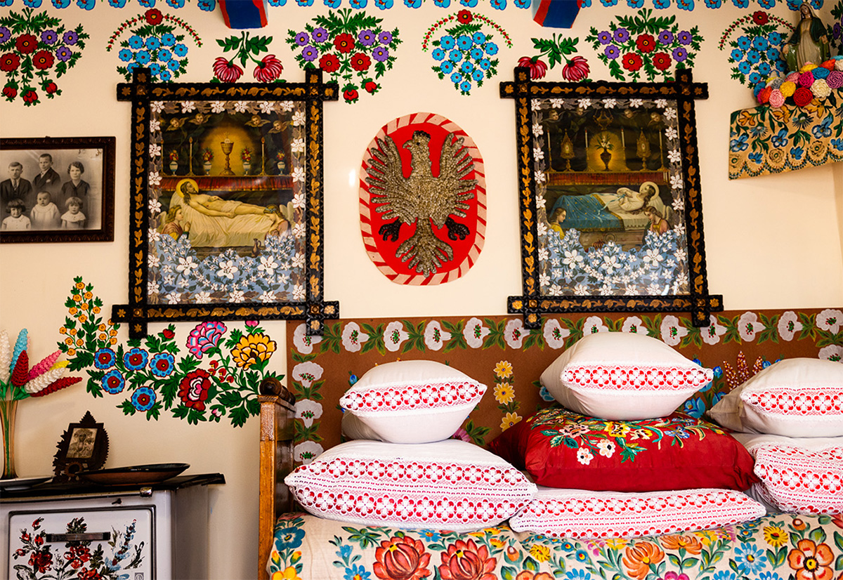 Do sesji zaprosiłam Magdę, której naturalna uroda doskonale współgrała z klimatem Zalipia. Włożyłyśmy dużo serca w przygotowanie stylizacji – subtelne koronki, lekkie tkaniny i jasne kolory nie odciągały uwagi od biżuterii, a jedynie podkreślały jej ręcznie tworzoną formę. Produkty Perl Designs, wykonane z pereł i kamieni naturalnych, zostały w tym sezonie wzbogacone o szydełkowe dodatki. Dzięki temu świetnie łączyły się z ludowymi dekoracjami Zalipia. Motywy roślinne i morskie znalazły swoje miejsce na tle kolorowych chat. Fotografowałyśmy zarówno na zewnątrz, jak i w otoczeniu zabytkowych wnętrz Zagrody Felicji Curyłowej. Taka fotografia produktów w plenerze pozwoliła pokazać biżuterię w ciepłym, naturalnym świetle, a zdjęcia biżuterii hand made zyskały wyjątkowy, autentyczny charakter. To także przykład, jak różnorodnie może wyglądać sesja produktowa z modelką, kiedy łączy się odpowiednie miejsce, stylizację i unikatowe dodatki.